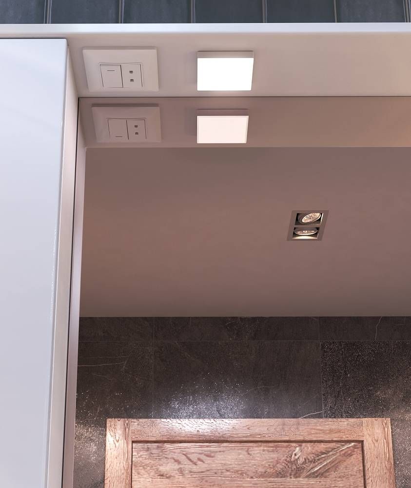 светильник, включатель с розеткой.