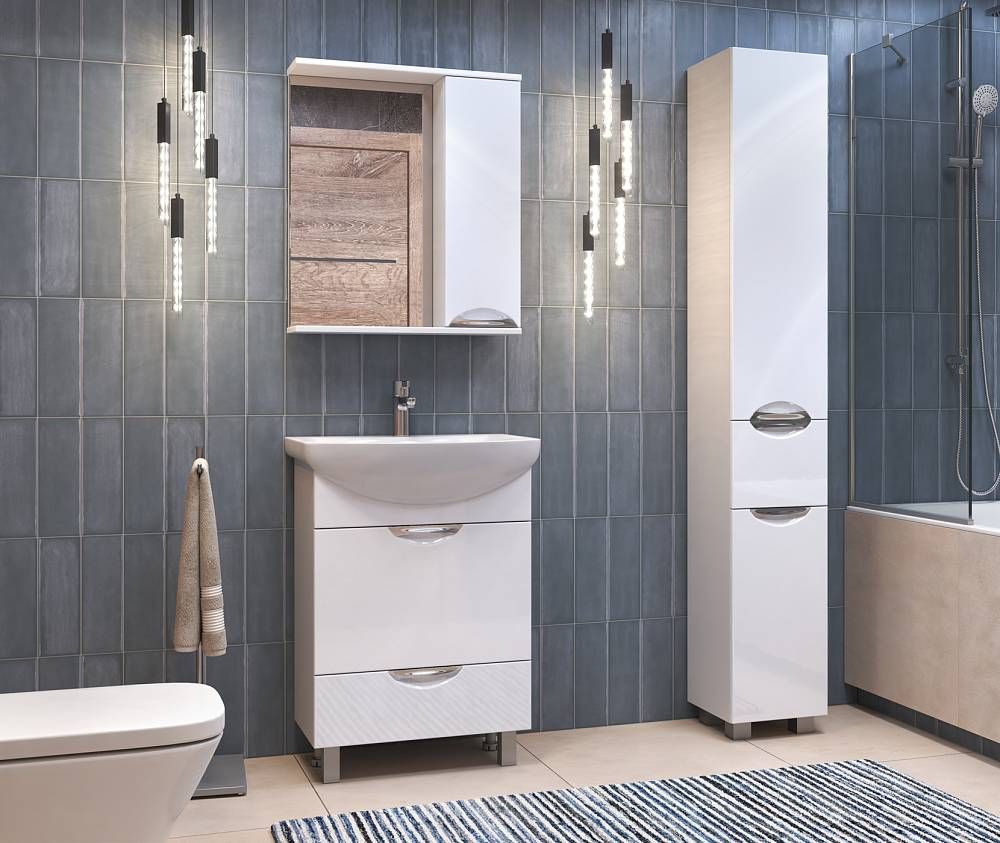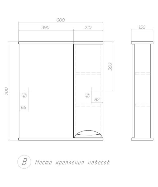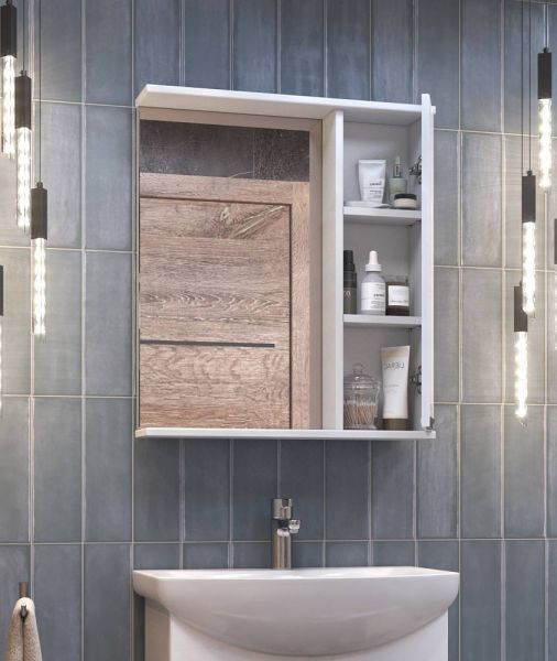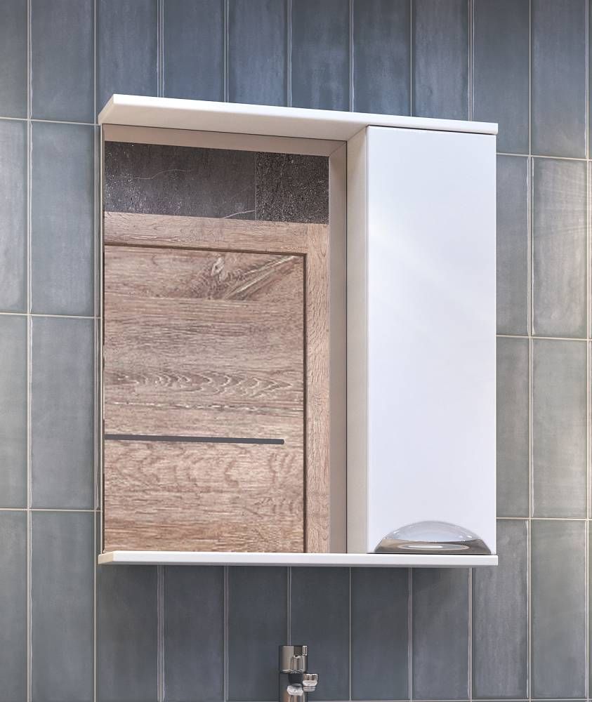 Левое/правое исполнение шкафчика; 1 дверца; 2 полки ЛДСП; ручка металлическая хромированная.Вариант исполнения зеркала с подсветкой z.CAL.60.R.El