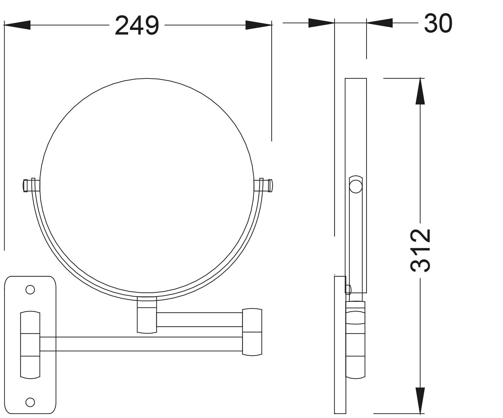 Зеркало в ванную комнату с 5-кратным увеличением, двустороннее.Диаметр зеркала 200 мм.